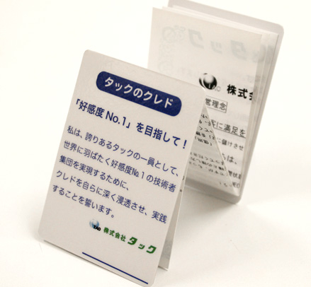 クレドが完成して5カ月が経過― タックでは、「クレドミーティング」をいつ導入しましたか。 (瀧川社長) 当社では、「クレドミーティング」を2011年(平成23年)に導入しました。 クレドが完成して、現在5カ月が経ったところです。 ― タックでは、どのようなクレドを作りましたか。 (瀧川社長) 当社は次のようなクレドを作りました。
