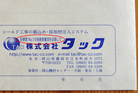 さらに毎日の朝礼で、クレドを1項目ずつ唱和しています。朝礼では、ファシリテーターの方から教わった「Good & New」(※)も行っています。 ※Good & New:24時間以内に起きた良かったこと、新しく気がついたことを、グループで話し合うワーク 社員たちの激論を通じて決まった「好感度No.1の技術者集団を目指す」というビジョンは、さっそく新しい社用封筒などに印刷し始めました。